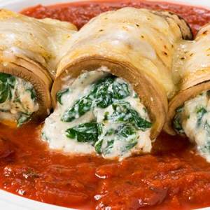 with marinara sauce, garlic broccoli and seasoned ricotta cheese