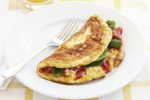 with cherry tomatoes, breakfast potatoes, peppers, feta cheese and baby spinach